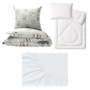 Zestaw pościeli 100x160 + 50x60 + prześcieradło jersey 80x160 | 502sza | szara | króliczki