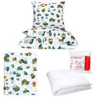 Zestaw pościeli 100x160 + 40x60 + prześcieradło we wzorze 80x160 | 513mor | biało zielona | zwierzątka