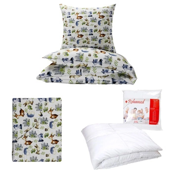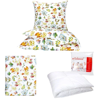 Zestaw pościeli 100x160 + 40x60 + prześcieradło we wzorze 80x160 | 502kol | kolorowa | zwierzątka króliczki