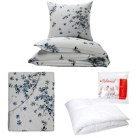 Zestaw pościeli 100x160 + 40x60 + prześcieradło we wzorze 80x160 | 237cha | biało niebieska | kwiaty