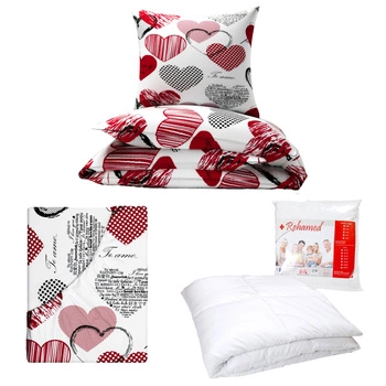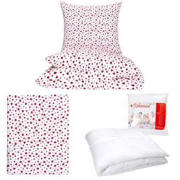 Zestaw pościeli 100x160 + 40x60 + prześcieradło we wzorze 80x160 | 444bia | bało czerwona | serca walentynki