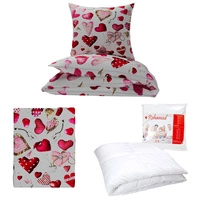 Zestaw pościeli 100x160 + 40x60 + prześcieradło we wzorze 80x160 | 073s-c | szaro czerwona | serca walentynki