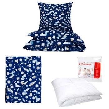 Zestaw pościeli 100x160 + 40x60 + prześcieradło we wzorze 80x160 | 202jas | niebieska | kosmos