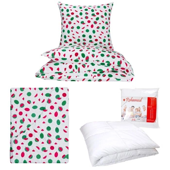 Zestaw pościeli 100x160 + 40x60 + prześcieradło we wzorze 80x160 | 151arb | biała | arbuzy owoce