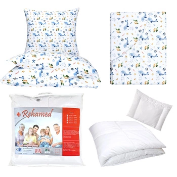 Zestaw pościeli 100x160 + 50x60 + prześcieradło we wzorze 80x160 | 235zlw | biało niebieska | ocean