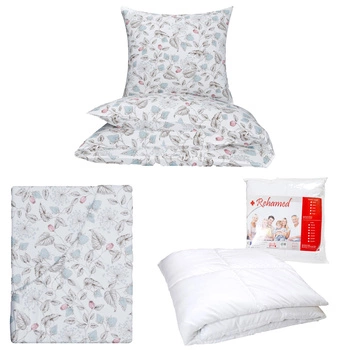 Zestaw pościeli 100x160 + 50x60 + prześcieradło we wzorze 80x160 | 389pas | biało niebieska | liście jesienne