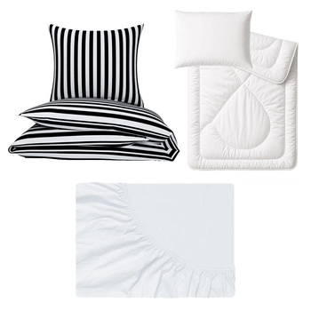 Zestaw pościeli 100x160 + 40x60 + prześcieradło jersey 80x160 | 213czr | biało czarna | pasy