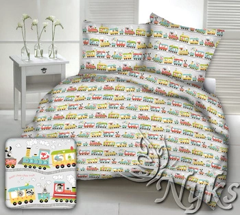 Pościel bawełniana 160x200 + poszewka na poduszkę 70x80 | 266bia | biała | pociagi ciuchcie