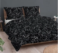 Pościel bawełniana 180x200 + poszewki na poduszkę 2*70x80 | D102cza | czarna | kwiaty