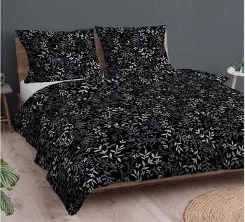 Pościel bawełniana 200x200 + poszewki na poduszkę 2*70x80 | D102cza | czarna | kwiaty