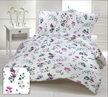 Pościel bawełniana 160x200 + poszewki na poduszkę 2*70x80 | 302mal | biała | kwiaty