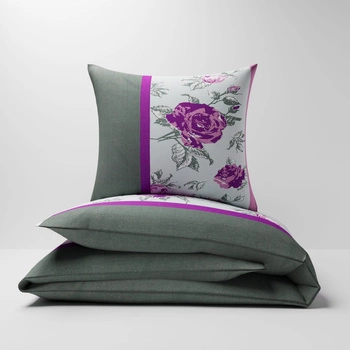 Pościel bawełniana 160x200 + poszewki na poduszkę 2*70x80 | 063róż | szaro różowa | kwiaty róże