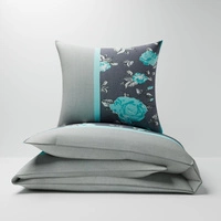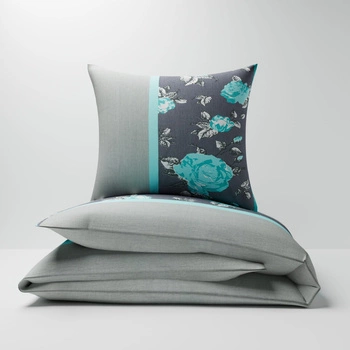 Pościel bawełniana 160x200 + poszewki na poduszkę 2*70x80 | 063tur | szaro turkusowa | kwiaty róże