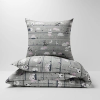 Pościel bawełniana 160x200 + poszewka na poduszkę 50x60 | 189s-c | szara | psy