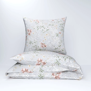 Pościel bawełniana 160x200 + poszewki na poduszkę 2*70x80 | 205sza | szare | kwiaty