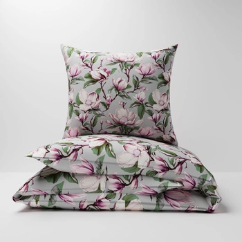 Pościel bawełniana 160x200 + poszewka na poduszkę 50x60 | 075fio | szaro wrzosowa | kwiaty jabłoni