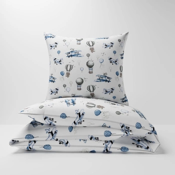 Pościel bawełniana 160x200 + 70x80 + 40x40 | 081b-n | biało niebieska | samoloty balony