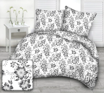 Pościel flanela 160x200 + poszewki na poduszkę 2*70x80 | 116bsz | biała szara | kwiaty lilie