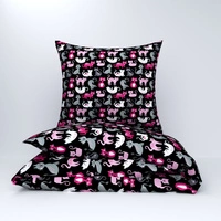 Pościel bawełniana 140x200 + poszewki na poduszkę 2*70x80 | 432ama | czarno różowa | koty