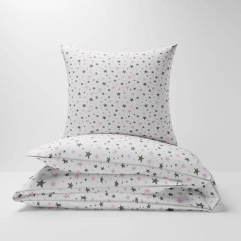 Pościel dla dziecka bawełniana 100x140 + poszewka na poduszkę 40x60 | 300róż | szaro różowa | gwiazdki