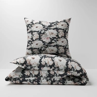 Pościel z kory 160x200 + poszewka na poduszkę 50x60 | 075grf | grafitowa | kwiaty