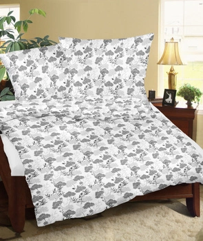 Pościel z kory 200x220 + poszewki na poduszkę 2*70x80 | 219szary | szara | kwiaty