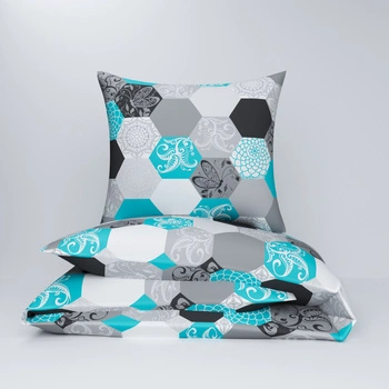 Pościel z kory 200x220 + poszewki na poduszkę 2*70x80 | 208Nblu | szaro turkusowa | plastry miodu