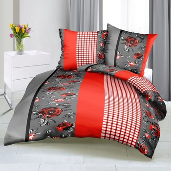 Pościel bawełniana 160x200 + poszewki na poduszkę 2*70x80 | 063cze | czerwono czarna | kwiaty róże