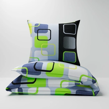 Pościel bawełniana 160x200 + poszewka na poduszkę 50x60 | 097zie | szaro zielona | wzór geometryczny