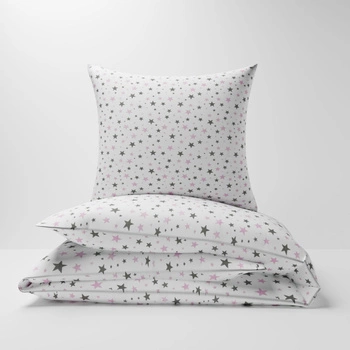 Pościel bawełniana 160x200 + poszewka na poduszkę 50x60 | 188b-r | biało różowa | gwiazdy