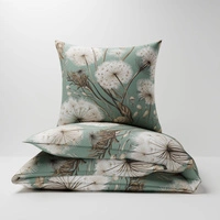 Pościel bawełniana 160x200 + poszewka na poduszkę 50x60 | 373zie | szałwiowa | dmuchawce
