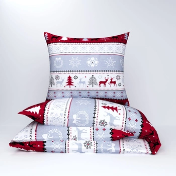 Pościel bawełniana 160x200 + poszewka na poduszkę 70x80 | 446red | szaro czerwona | renifery świąteczna