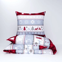 Pościel bawełniana 160x200 + poszewka na poduszkę 70x80 | 327red | czerwona | wzór świąteczny renifery