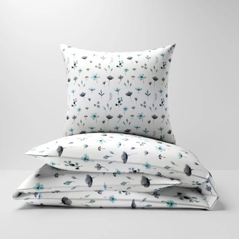 Pościel bawełniana 160x200 + poszewka na poduszkę 70x80 | 237cha | biało niebieska | kwiaty