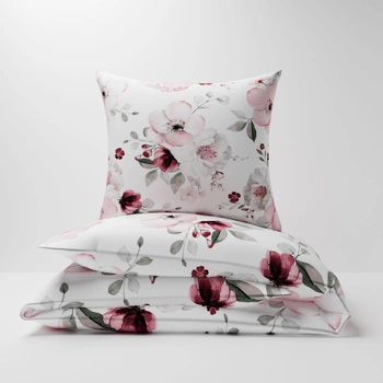 Pościel bawełniana 160x200 + poszewka na poduszkę 70x80 | 033pas | biała | kwiaty malowane