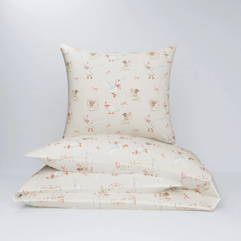 Pościel bawełniana 160x200 + poszewka na poduszkę 70x80 | 424bez | beżowa | gęsi i baletnice myszy