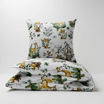 Pościel bawełniana 160x200 + 70x80 + 40x40 | 314wie | biała | sarenki i króliczki