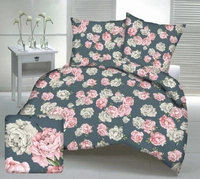 Pościel bawełniana 160x200 + 70x80 + 40x40 | 336grf | grafitowa | kwiaty piwonie