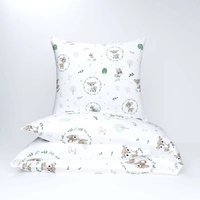 Pościel bawełniana 160x200 + poszewki na poduszkę 2*70x80 | 513mor | biało zielona | zwierzątka