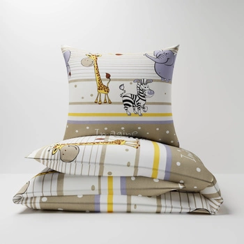 Pościel bawełniana 160x200 + poszewka na poduszkę 50x60 | 104bez | beżowa | zwierzątka safari