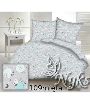 Pościel dla dziecka bawełniana 100x140 + poszewka na poduszkę 50x60 | 109mie | szaro miętowa | owieczki