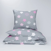 Pościel dla dziecka bawełniana 140x160 + poszewka na poduszkę 70x80 | 300róż | szaro różowa | gwiazdki