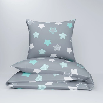 Pościel dla dziecka bawełniana 140x160 + poszewka na poduszkę 70x80 | 300mie | szaro miętowa | gwiazdki