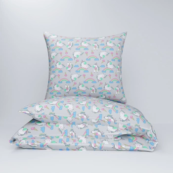 Pościel bawełniana 140x200 + poszewka na poduszkę 50x60 | 103szary | szara | jednorożce