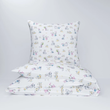 Pościel dla dziecka bawełniana 140x160 + poszewka na poduszkę 50x60 | 502bia | biała | króliczki
