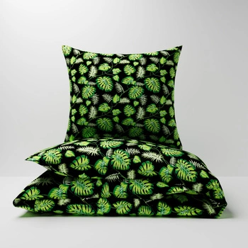 Pościel bawełniana 140x200 + poszewki na poduszkę 2*70x80 | 032czz | czarno zielona | liście monstery