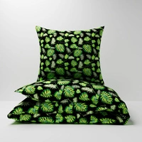 Pościel bawełniana 140x200 + poszewka na poduszkę 50x60 | 032czz | czarno zielona | liście monstery