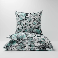 Pościel dla dziecka bawełniana 120x160 + poszewka na poduszkę 50x60 | 082mie | miętowa | kwiaty róże