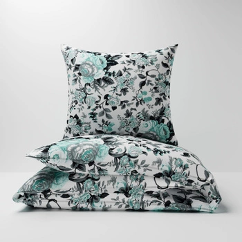 Pościel dla dziecka bawełniana 140x160 + poszewka na poduszkę 50x60 | 082mie | miętowa | kwiaty róże