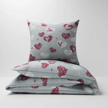 Pościel bawełniana 200x220 + poszewki na poduszkę 2*70x80 | 113sza | szara | serca walentynki